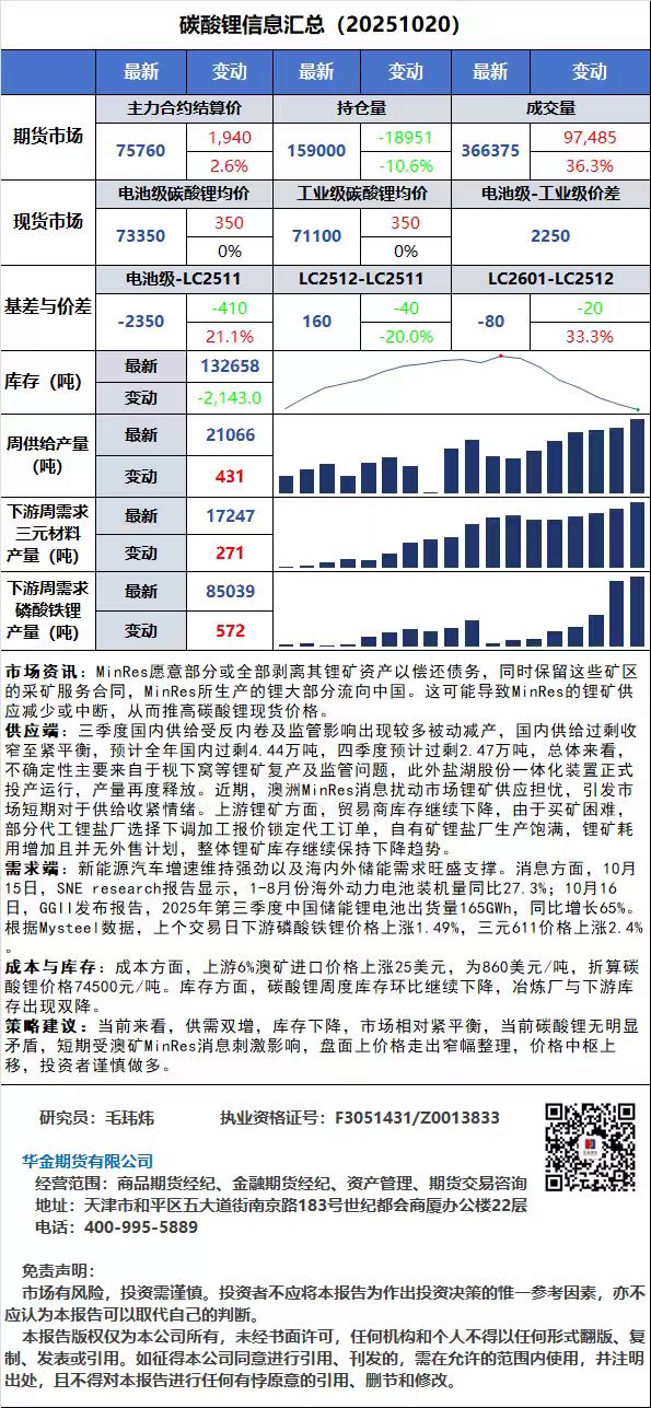 华金期货早盘提示(20251020)-工业硅、多晶硅、碳酸锂