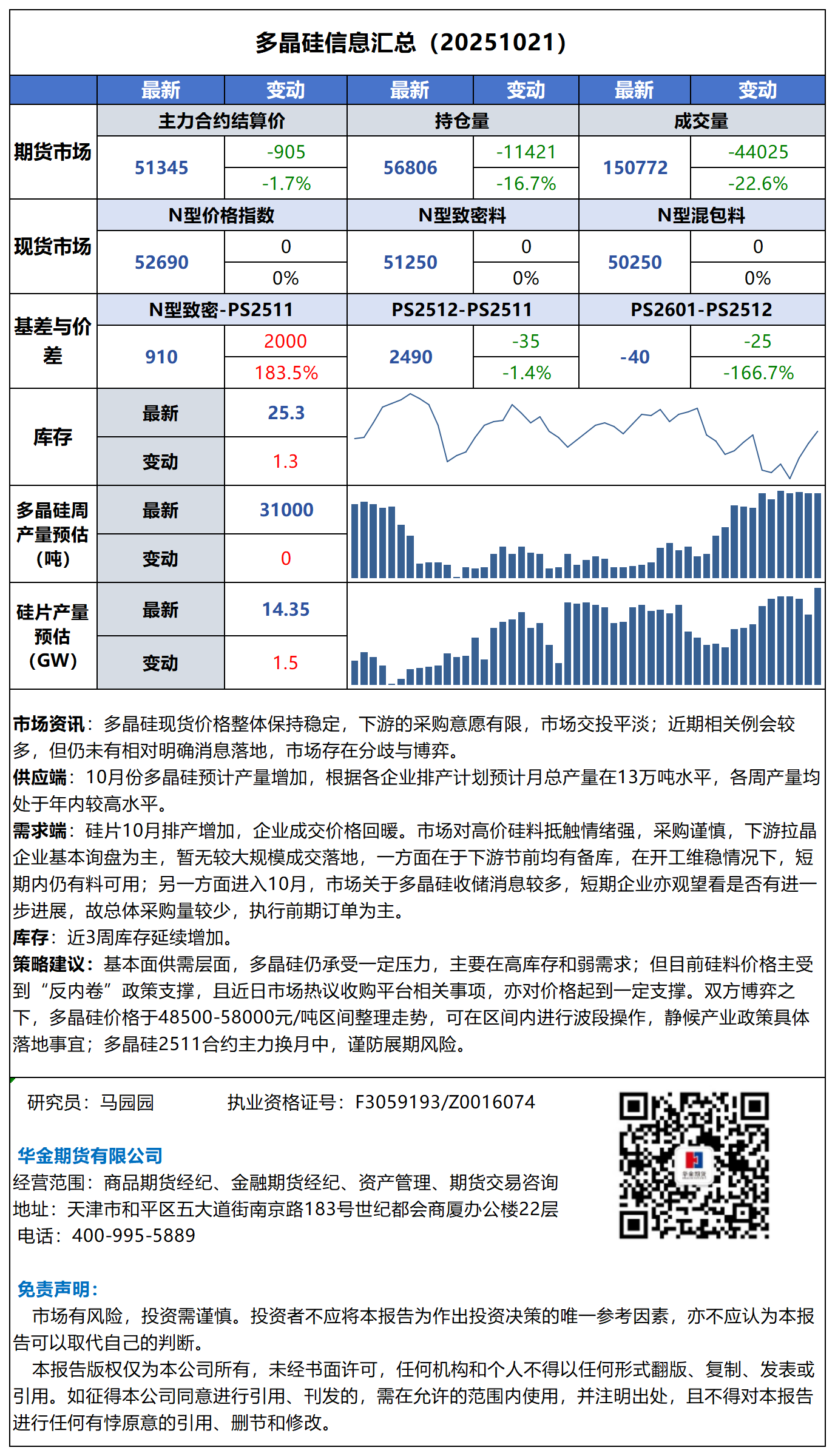 华金早评(20251021)-工业硅、多晶硅、碳酸锂