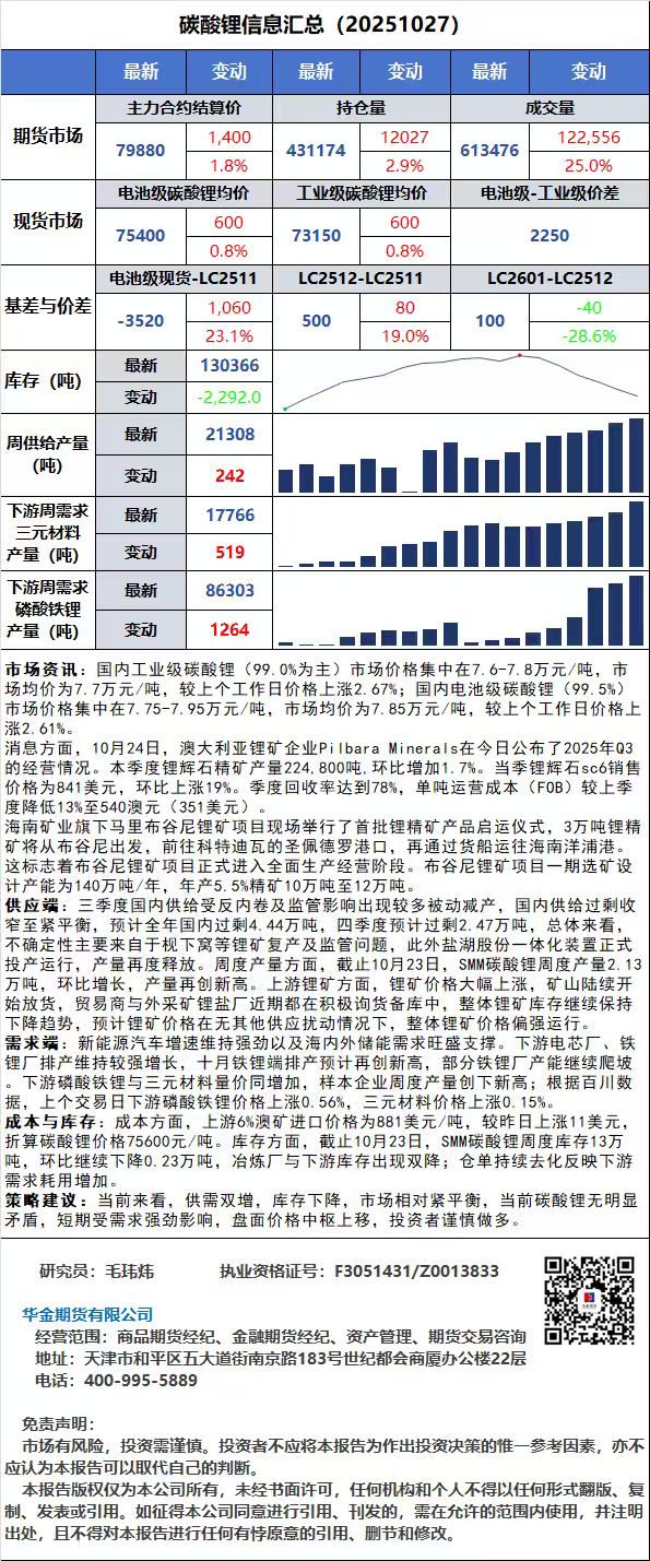 华金早评(20251027)-工业硅、多晶硅、碳酸锂
