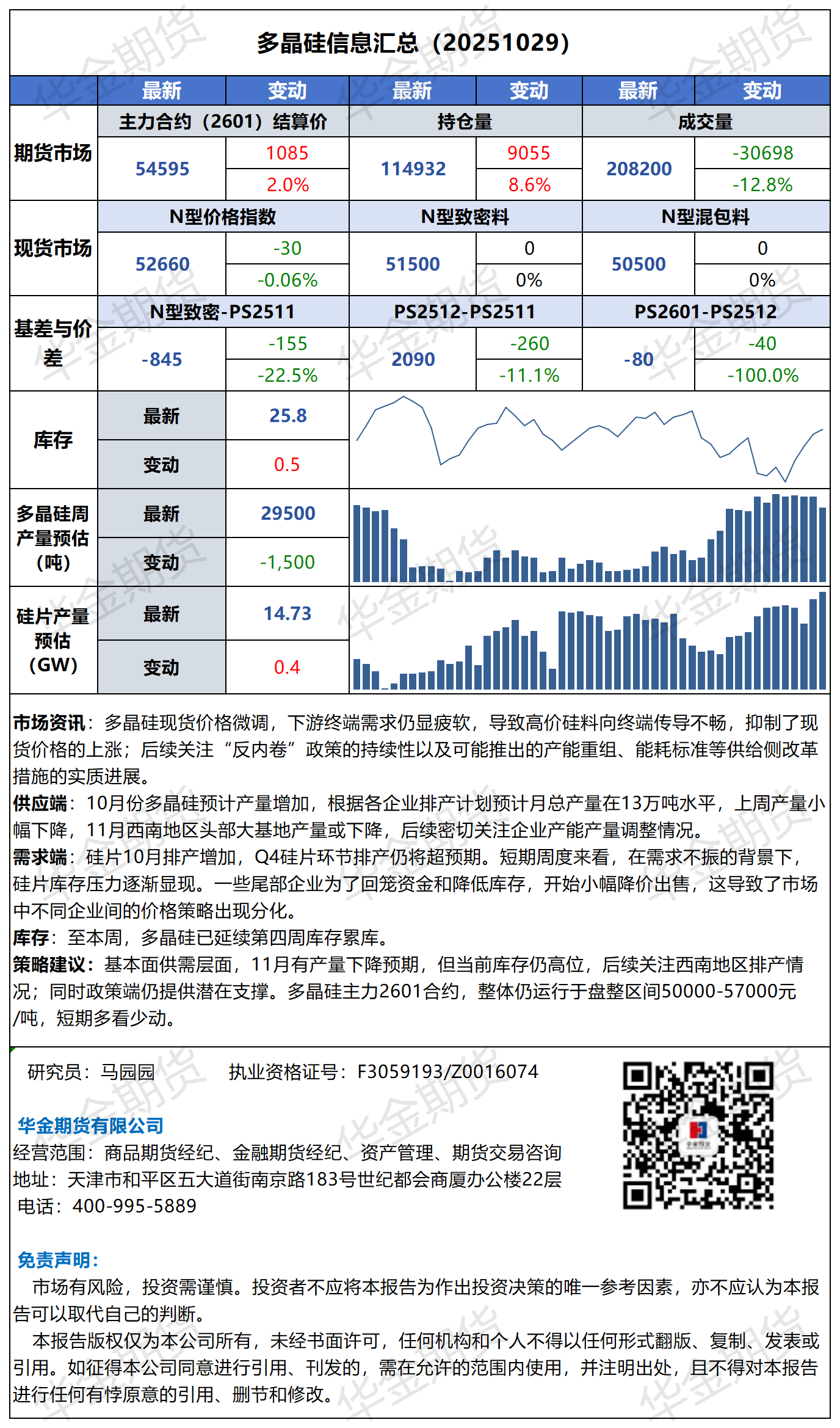 华金早评(20251029)-工业硅、多晶硅、碳酸锂
